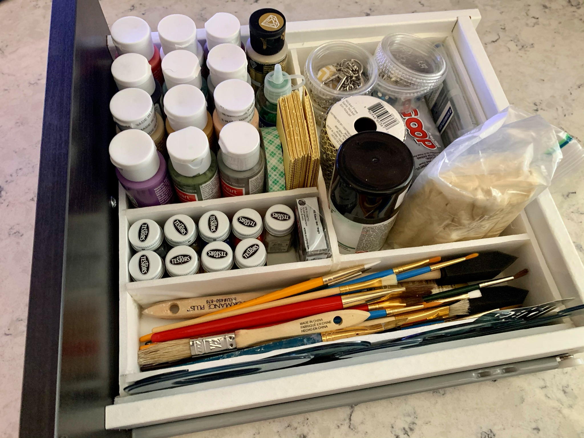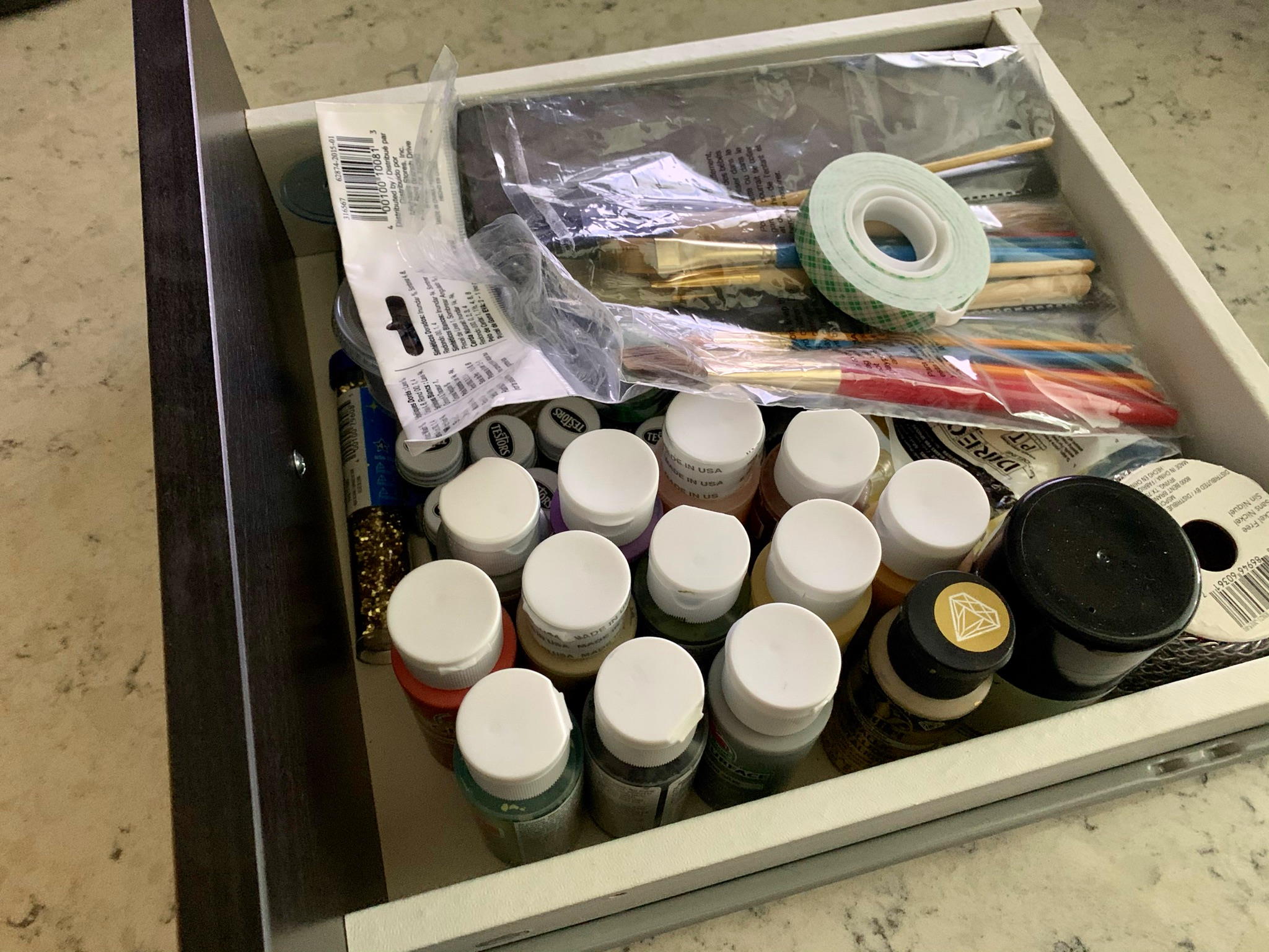 I was able to tackle another studio credenza drawer this weekend. This time, the target was the crafting supplies.