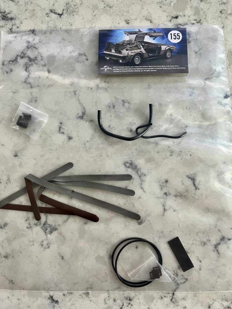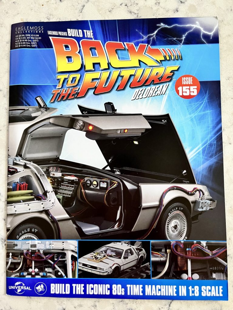 Those of you who’ve been reading these blog entries over the past couple of years know that I’ve been building a model of the DeLorean from Back to the Future. The subscription service would allow you to build out the car with a new, weekly parts kit (that were actually delivered monthly, so you’d get four kits at a time). In total, there were 159 weekly parts kits (a.k.a. Issues) that, once complete, would not only give you the famous time machine model, but also a bunch of other great little extras.