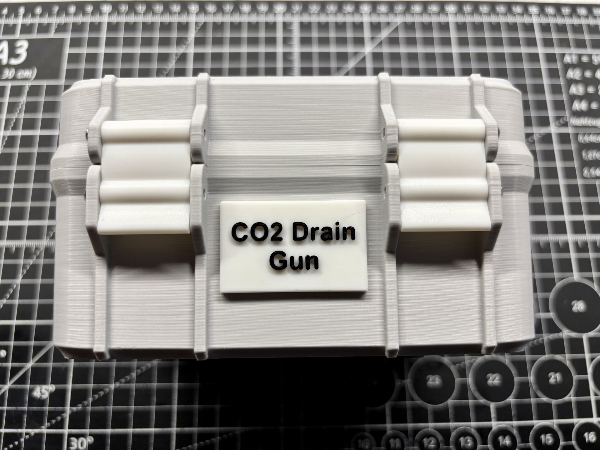 To help clear the drain line for my HVAC unit at the house, I purchased a CO2 gun off of Amazon. When it arrived, it came in a bubble mailer and I had no real way to store it. So, I broke out Fusion and modeled up a container and 3D printed it.
